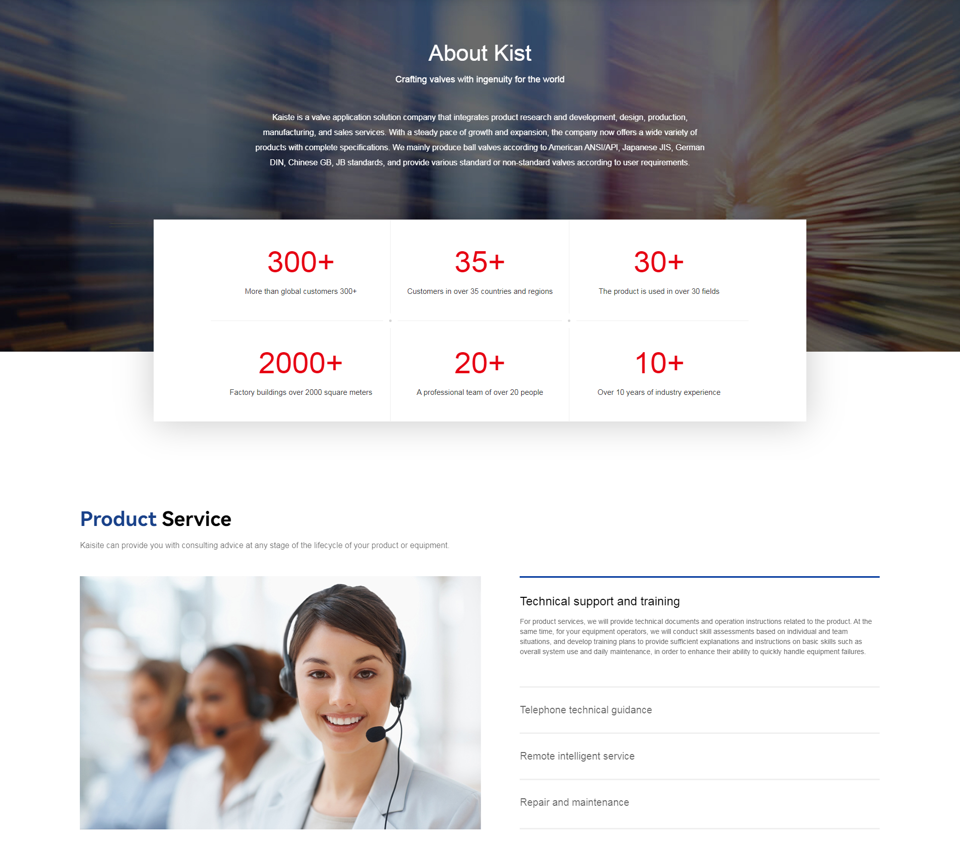 Kaisite is a valve application solution company that integrates product research and development, design, production, manufacturing, and sales services. With a steady pace of growth and expansion, the company now offers a wide variety of products with complete specifications. We mainly produce ball valves according to American ANSI/APl, Japanese JIS, German DIN, Chinese GB, JB standards, and provide various standard or non-standard valves according to user requirements.With over 16 years of professional production experience and global business cooperations in over 35 countries, has been one of the premier industrial valve brand manufacturers and suppliers in China.