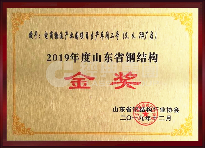 由山東經典建筑設計有限公司設計、山東經典建設工程有限公司承建的電商物流產業(yè)園生產車間一號二號項目榮獲“中國鋼結構金獎”。