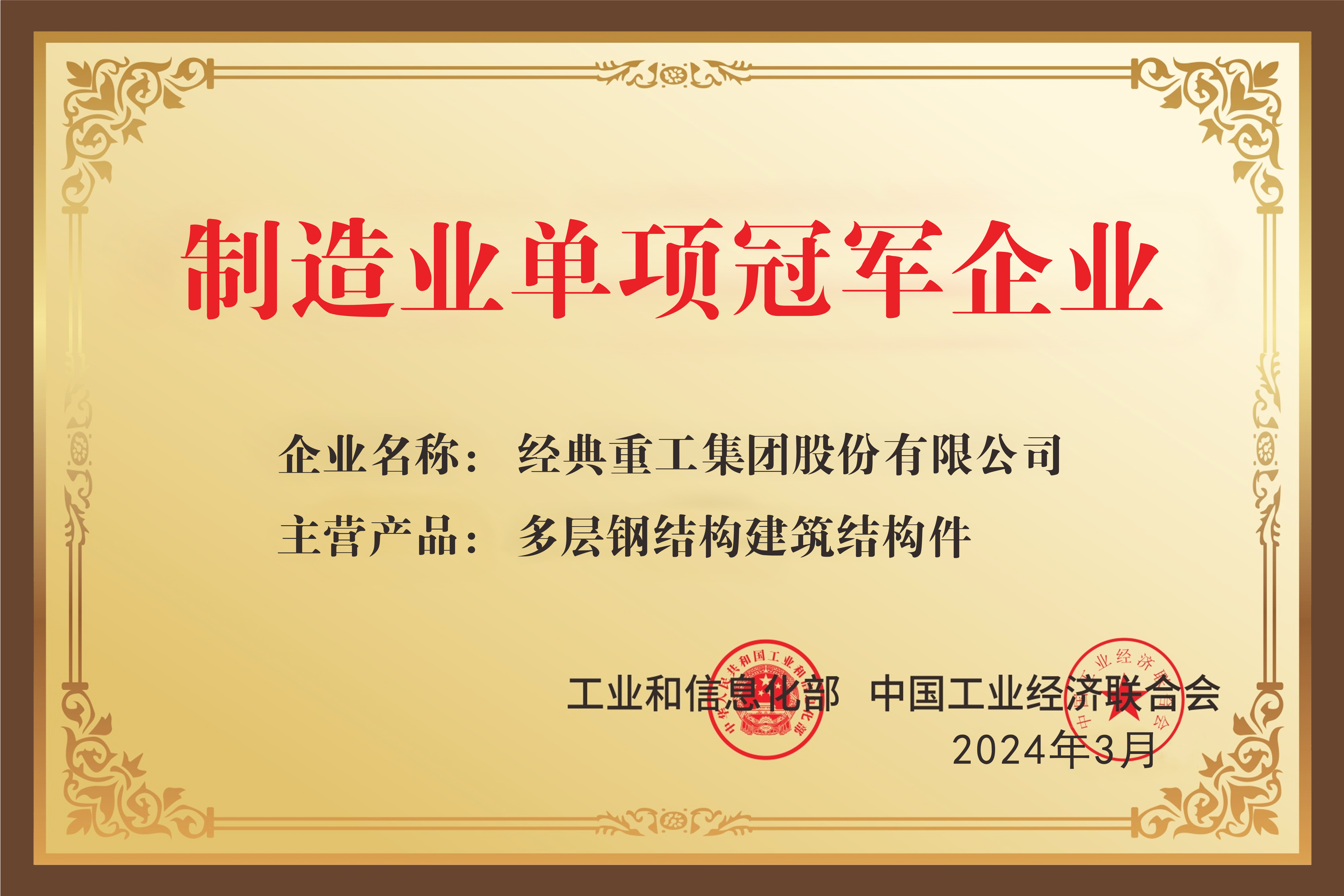經典集團榮獲“國家級制造業(yè)單項冠軍示范企業(yè)”稱號。