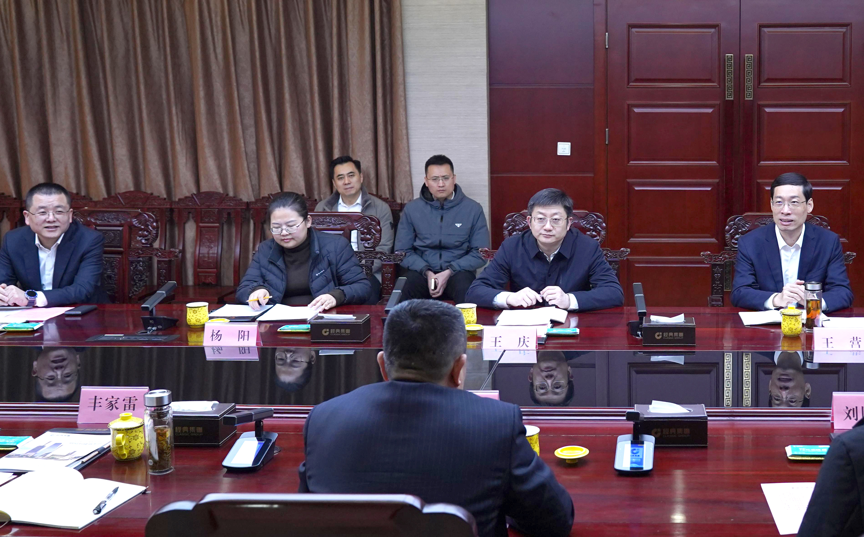 3月5日,濟(jì)寧學(xué)院黨委書記仲紅波,黨委副書記豐家雷,副院長劉國棟一行到經(jīng)典集團(tuán)調(diào)研科技創(chuàng)新、校企合作等情況。兗州區(qū)委書記王慶,區(qū)委副書記、區(qū)長王營,副區(qū)長楊陽,經(jīng)典集團(tuán)董事長史振華,新兗鎮(zhèn)、工業(yè)園區(qū)、教體局、科技局等部門負(fù)責(zé)人陪同調(diào)研。