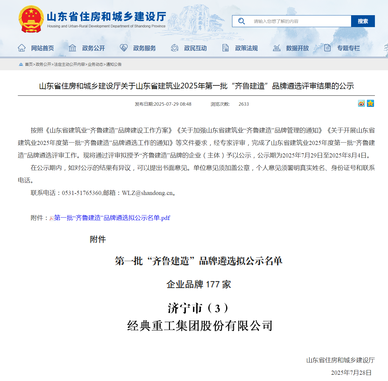 近日,山東省住房和城鄉(xiāng)建設(shè)廳正式公布2025年第一批“齊魯建造”品牌遴選名單,經(jīng)典重工集團(tuán)股份有限公司憑借在鋼結(jié)構(gòu)建筑部品建材領(lǐng)域的技術(shù)實(shí)力與品牌影響力,成功入選部品建材品牌名錄,這標(biāo)志著公司在推動(dòng)建筑產(chǎn)業(yè)現(xiàn)代化、智能化、綠色化發(fā)展方面的綜合實(shí)力又獲省級(jí)權(quán)威認(rèn)可。